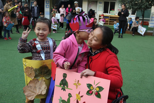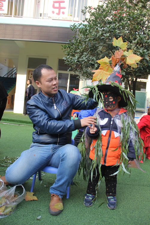 11月14日,济源市实验幼儿园的校园里,爸爸妈妈和孩子们一起动手,用剪、拼、粘、画等多种方式,将树叶变成了超人的帽子、美丽的裙子、迷人的眼镜、王者的面具、魔法师的魔杖、晶莹的披风、形象生动的树叶画等等各种各样的“艺术品”。随后,家长将孩子打扮成为树叶的代言人,孩子们身着“树叶服装”,在富有节奏感的音乐中进行了小模特走秀,将“树叶艺术品”展示给所有的小朋友和家长。