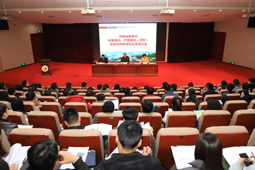 12月18日,2017年省属高校、厅直属单位(学校)劳资与养老保险业务培训会在河南中医药大学举办。省教育厅副巡视员张涛出席并讲话,来自全省60余家单位的人事处长及劳资业务经办人员共计180参加培训。