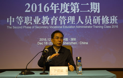 省教育厅副厅长尹洪斌到2016年度第二期河南省中职管理干部研修班看望广大学员,并做专题报告