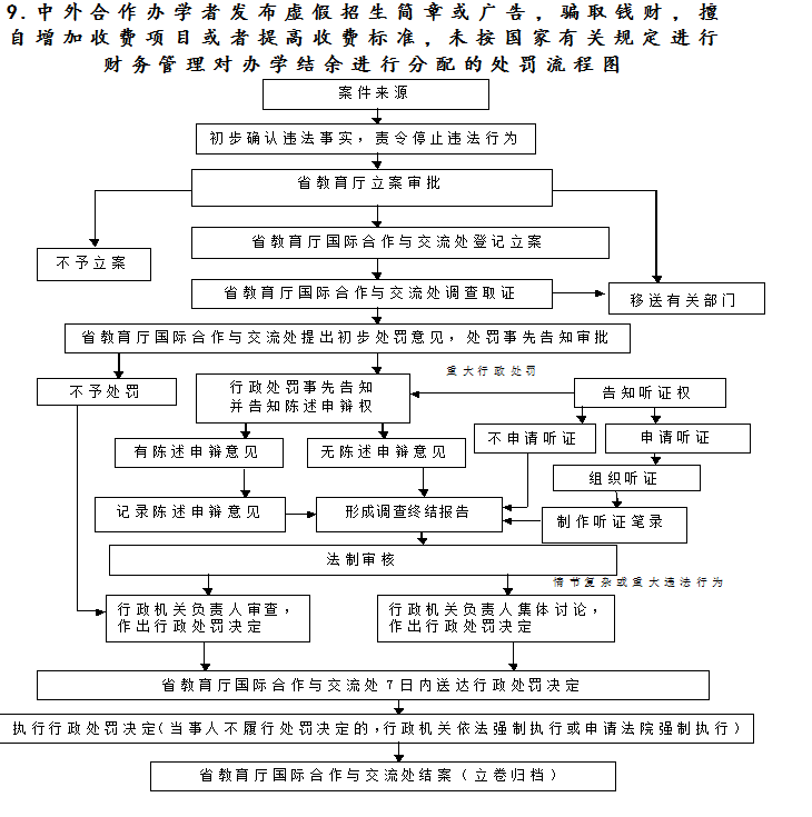 10﹒发布违反国家规定的招生简章,或者进行虚假宣传、骗取钱财的;未按照信息公开的规定公开招生信息的;超出核定办学规模招生或者擅自调整招生计划的;违反规定降低标准录取考生或者拒绝录取符合条件的考生的;在特殊类型招生中出台违反国家规定的报考条件,或者弄虚作假、徇私舞弊,录取不符合条件的考生的;违规委托中介机构进行招生录取,或者以承诺录取为名向考生收取费用的处罚(适用11项)
