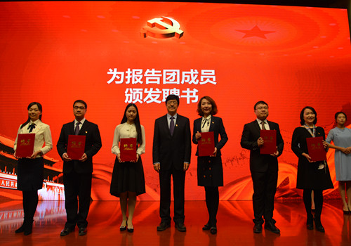 为巡讲团部分辅导员代表颁发聘书
