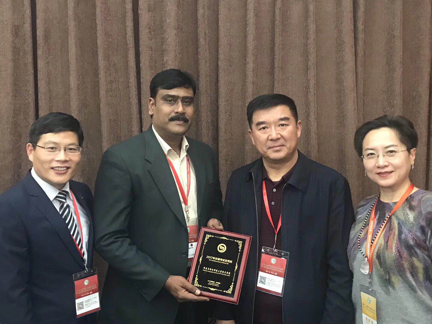 会上,郑州大学与印度韦洛尔科技大学合作创建的孔子学院获得2017年汉语考试优秀奖,国家汉办赵国成副主任为获奖单位颁奖。这是汉考国际和孔子学院总部首次组织对全球1100家汉语考试点进行表彰,其中13家机构获得考试杰出贡献奖,25家机构获得汉语考试优秀奖。郑州大学一直以来高度重视孔子学院工作,并以其为国际合作办学的重要平台,教育走出去的重要载体,精心组织,选派优秀青年骨干教师作为中方院长,扎根印度,勇挑重担,使得汉语考试在印度生根发芽,开花结果。