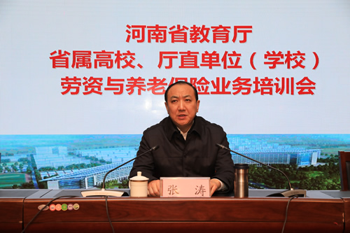 12月18日,2017年省属高校、厅直属单位(学校)劳资与养老保险业务培训会在河南中医药大学举办。省教育厅副巡视员张涛出席并讲话,来自全省60余家单位的人事处长及劳资业务经办人员共计180参加培训。