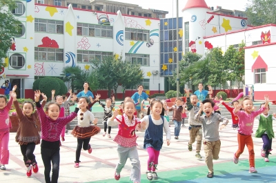 在美丽的幼儿园快乐生活健康成长